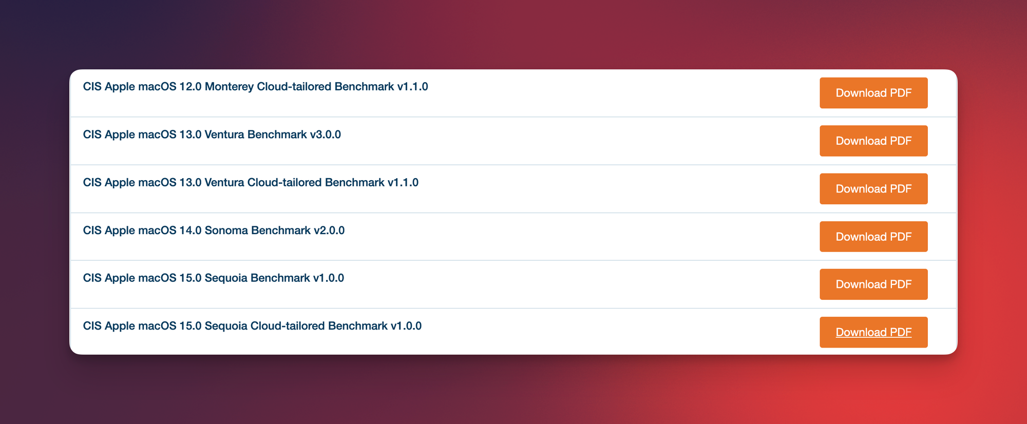 You can download the CIS benchmarks for your platform of choice (registration required—pro tip: use a “Hide My Email” address!). Be warned: these are hefty PDFs.
